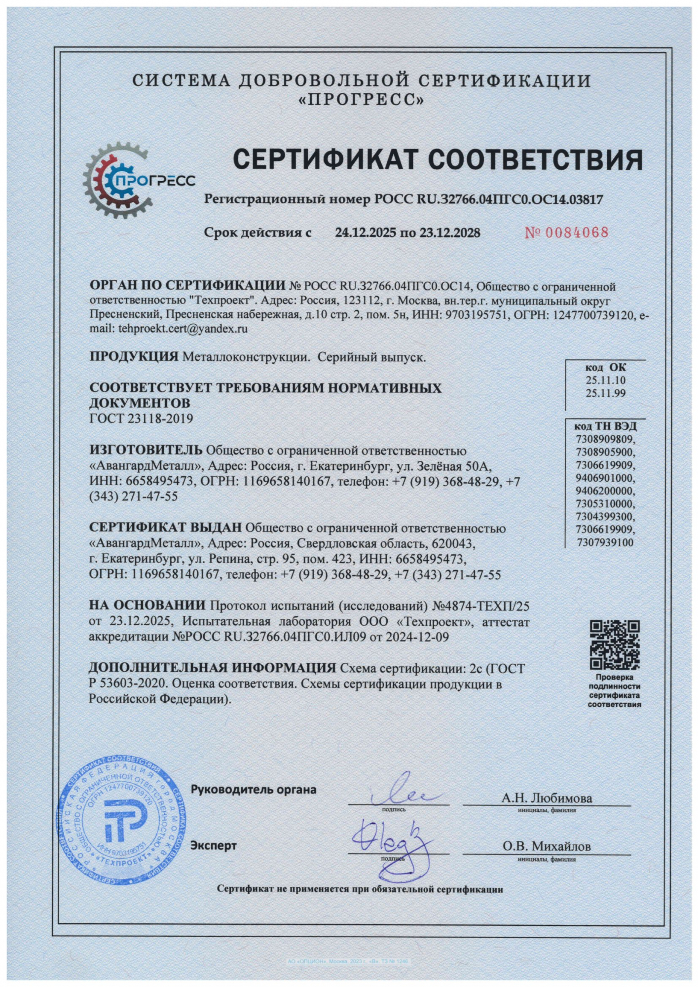 Сертификат соответсвия ГОСТ 23118-2019